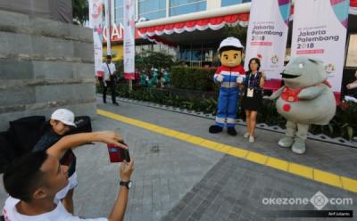 Boneka Maskot Pertamina Bentuk Orang Ramaikan Kirab Obor Asian Games 2018