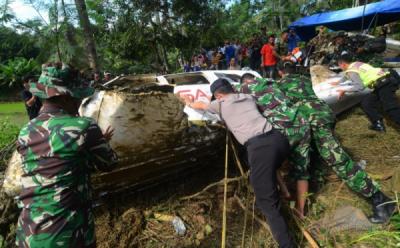 Proses Pemindahan Bangkai Pesawat Latih di Tasikmalaya