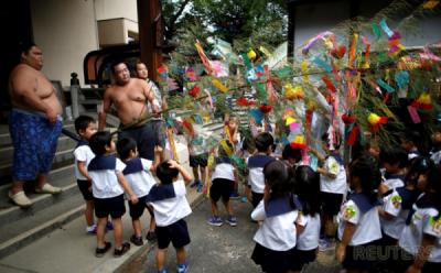 Pesumo Ini Angkat Sejumlah Anak TK dengan Satu Tangan