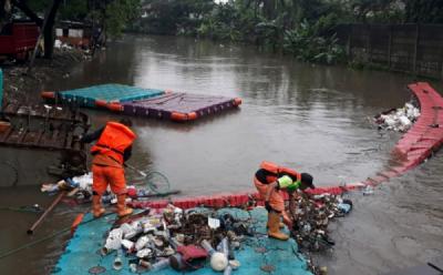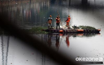 Intip Pasukan Orange Bersihkan Sampah di Kali Grogol