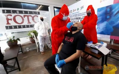 Balai Pewarta Foto Disemprot Cairan Disinfektan untuk Mencegah Penyebaran Covid-19