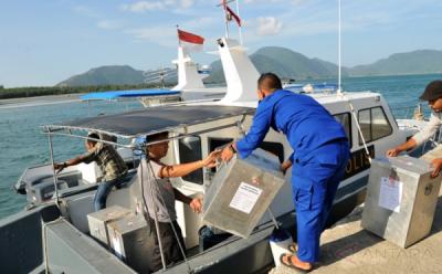 Gunakan Speed Boat Distribusi Logistik Pilkada ke Pulau Nasi dan Pulau Beras Aceh