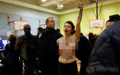Dua Perempuan Ini Nekat Aksi Telanjang Dada di TPS Donald Trump