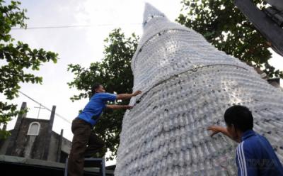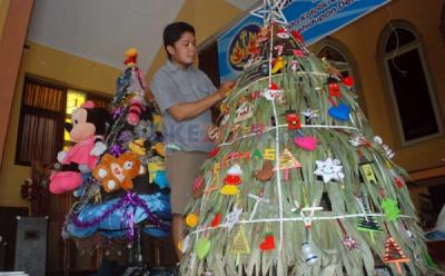 Unik, Pohon Natal dari Botol Plastik Bekas