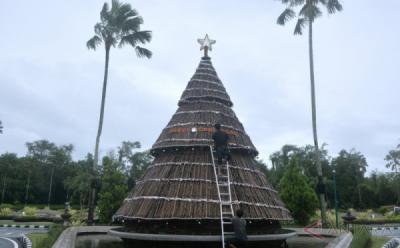 Siapa Sangka Pohon Natal Ini Berbahan Daun Bambu dan Kulit Jagung