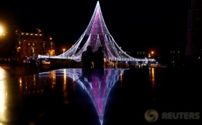 KEREN!!! Pohon Natal di Vilnius Lithuania Dilihat pada Malam Hari