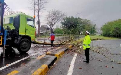 Pohon Tumbang di Ruas Tol Cakung Arah Cikunir
