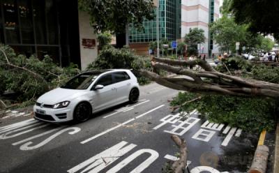 Pohon Tumbang akibat Topan Nida di Hong Kong