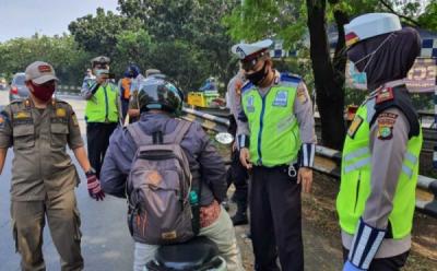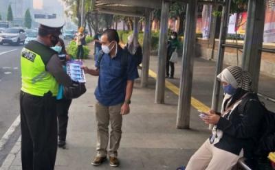 Petugas Razia Pengguna Jalan Tak Pakai Masker di Jembatan Layang UI