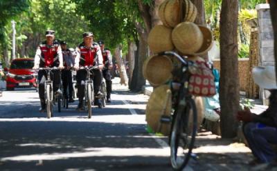 Polisi Berpatroli Gunakan Sepeda di Banyuwangi