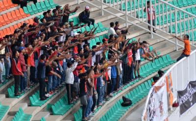 Meski Cuma Puluhan, Suporter DKI Jakarta Tetap Semangat Kasih Dukungan