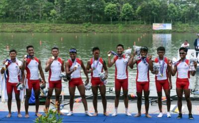 Tim Dayung DKI Raih Emas PON XIX Jabar di Rowing Eight Putra 2.000 M