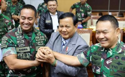 Momen Ketika Prabowo Rangkul Andika dan Dudung di Rapat DPR
