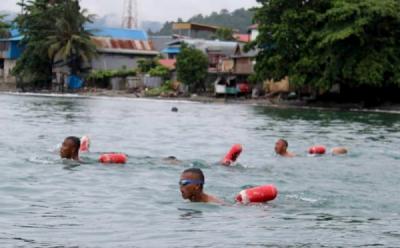 Renang Laut Prajurit Yonmarhanlan X di Pantai Hamadi Papua