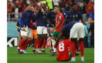 Selebrasi Pemain Timnas Prancis Kalahkan Maroko di Semfinal Piala Dunia 2022