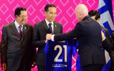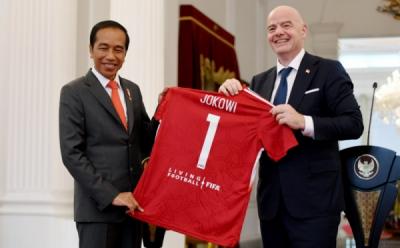 Momen Presiden Jokowi Terima Jersey Bernomor 21 dari Presiden FIFA