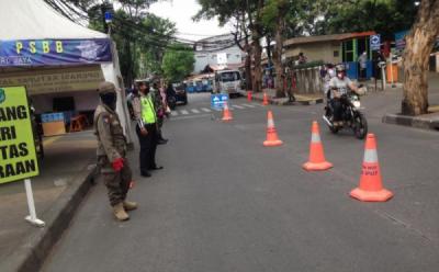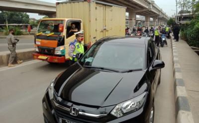 Pengawasan PSBB di Check Point Jalan Layang Akses UI