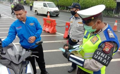 Teguran Tertulis untuk Pengendara Pelanggar Aturan PSBB di Check Point Tugu Tani