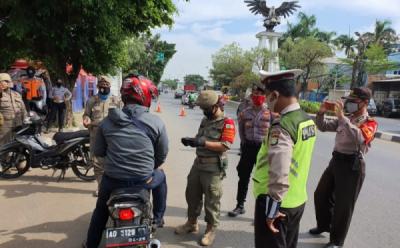 Petugas Imbau Pengendara Pakai Masker di Check Point Lampiri