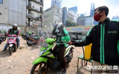 Intip Penyemprotan Disinfektan Ojek Online