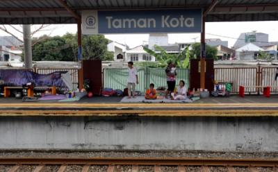 Warga Mengungsi di Tenda Darurat Peron Stasiun Taman Kota