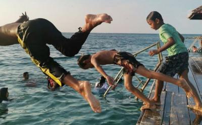 Intip Keceriaan Anak Pulau Seribu Bermain Air di Dermaga