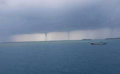 Penampakan Puting Beliung Secara Bersamaan di Kepulauan Seribu ini Fenomena Langka
