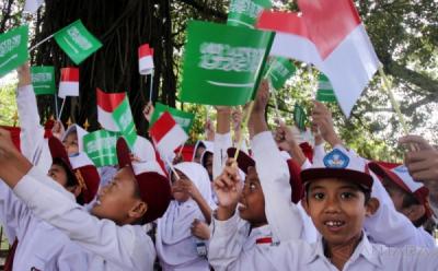 Siswa Sekolah Dasar Antusias Sambut Kedatangan Raja SAlman