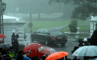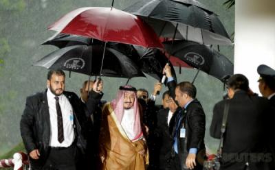 Hujan Deras di Istana Bogor, Raja Salman dan Presiden Jokowi Payungan