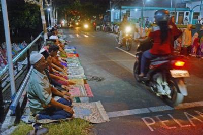 Umat Muslim di Denpasar Jalani Salat Tarawih di Pinggir Jalan