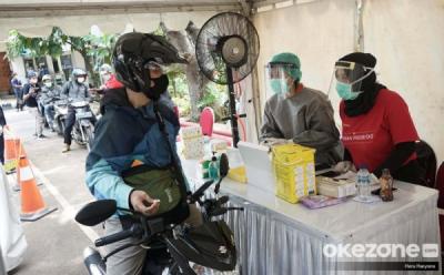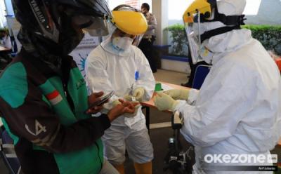 Driver Ojol Ikut Rapid Test Drive Thru di Kemenhub