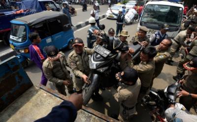 Parkir Liar Tanah Abang, Petugas Dishub Angkut Sepeda Motor Ini