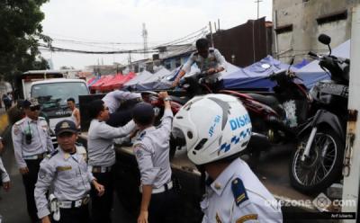 Dishub Angkut Mobil & Motor Parkir Liar di Kawasan Pasar Tanah Abang