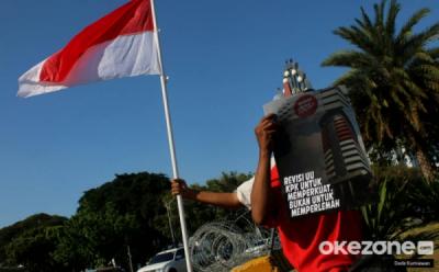 Dukung Revisi UU KPK Massa Aksi Kibarkan Bendera Merah Putih