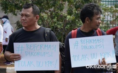Pegiat Anti Korupsi Tolak Revisi UU KPK di Depan Gedung DPR