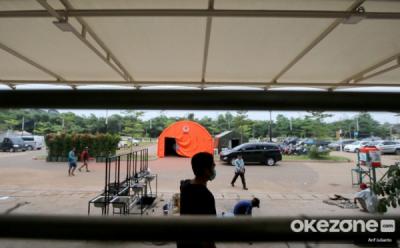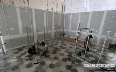 Suasana Pembangunan RS Darurat Covid-19 di KPT Tandon Ciater Tangsel
