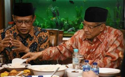 Momen Ketua Umum PBNU Tuangkan Nasi ke Piring Pimpinan Pusat Muhammadiyah