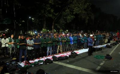 Di Depan Balai Kota, Massa Aksi Laksanakan Salat Ashar Berjamaah