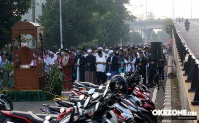 Ratusan Jamaah Salat Idul Fitri di Jalan Pondok Kopi