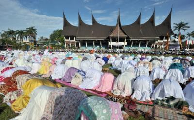 Padati Lapangan Imam Bonjol, Ribuan Warga Padang Laksanakan Salat Idul Fitri