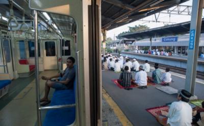 Salat Idul Fitri di Stasiun Kereta