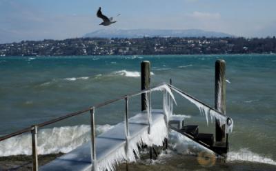 Ketika Salju Mulai Menyelimuti Dermaga di Jenewa Swiss