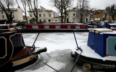 Deretan Perahu Tertutup Salju di Sebuah Sungai di Maida Vale London