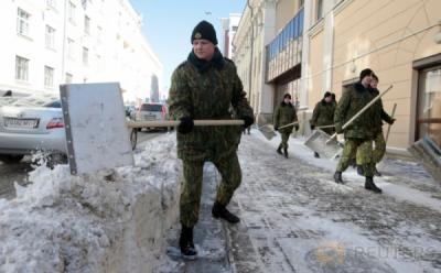 Bawa-Bawa Sekop, Tentara Belarus Bersihkan Pedestrian yang Tertutup Salju