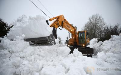 Ekskavator Dikerahkan untuk Bersihkan Salju Tebal yang Tutupi Jalan di Irlandia