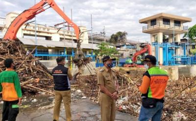 Petugas Kebersihan DKI Jakarta Bersihkan Sampah di Kali Pesanggrahan