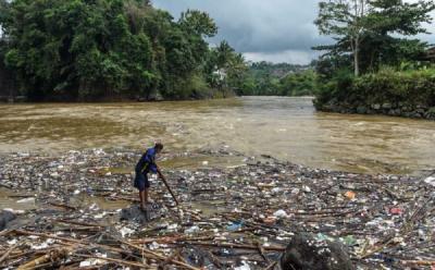 Tumpukan Sampah di Sungai Ciwulan Hasil Ulah Manusia