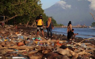 Pengunjung Menikmati Susasana Pantai Kastela di Dekat Sampah Berserakan