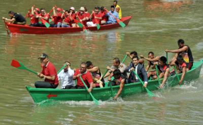 Sampan Jadi Transportasi Alternatif Warga Seberangi Sungai Konaweha di Sulawesi Tenggara