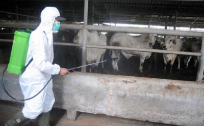 Cegah PMK, Hewan Ternak Sapi Disemprot Cairan Disinfektan